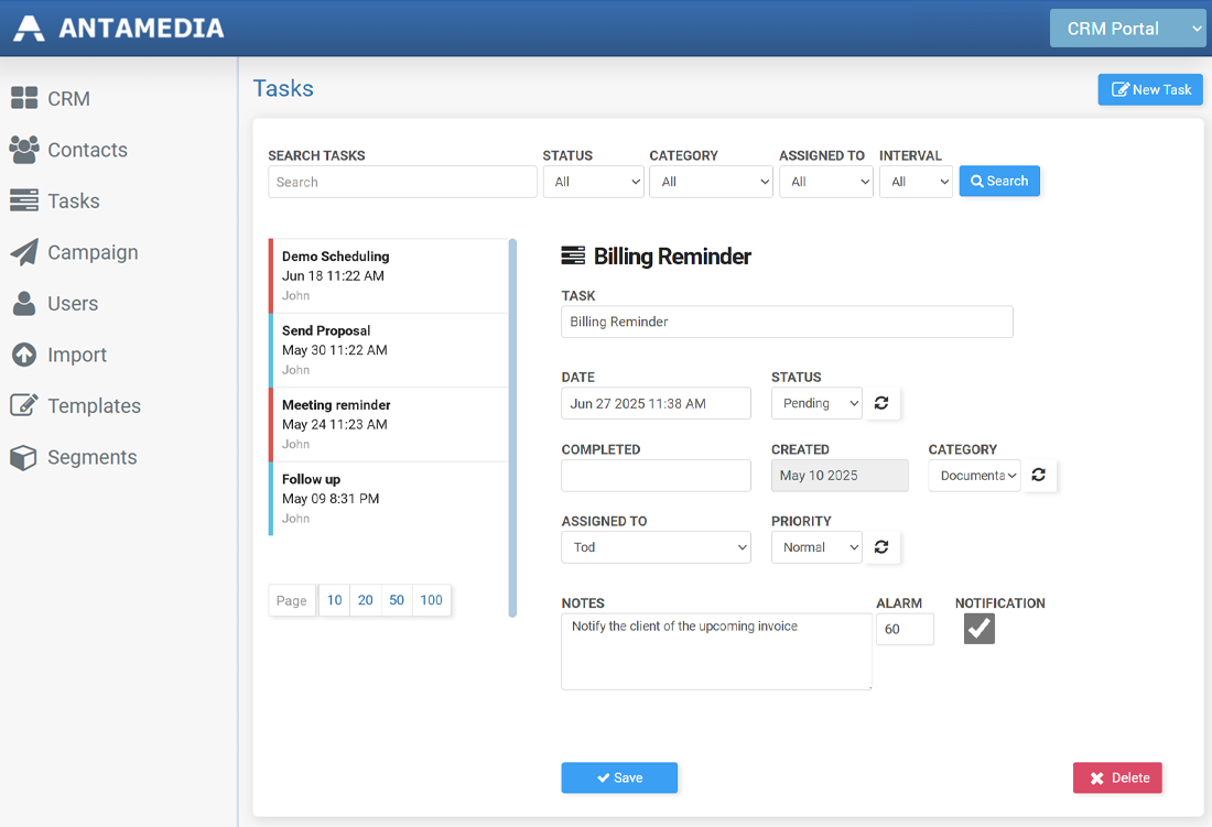 Antamedia CRM is designed to help small teams move faster, stay organized, and communicate with confidence.