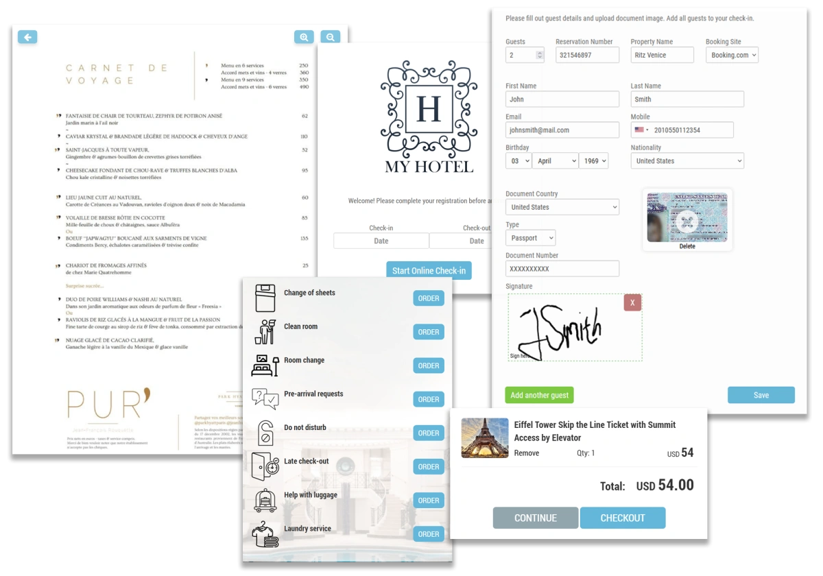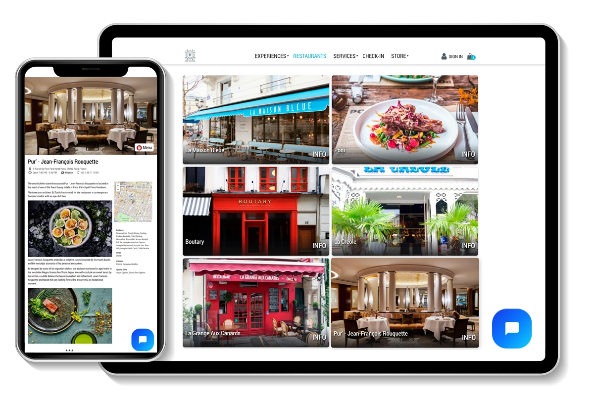 From restaurant menus and recommendations, web store, check-in, to room service options, amenities and experience bookings, guests can explore curated experiences tailored to their needs without having to interact with any staff members in person.