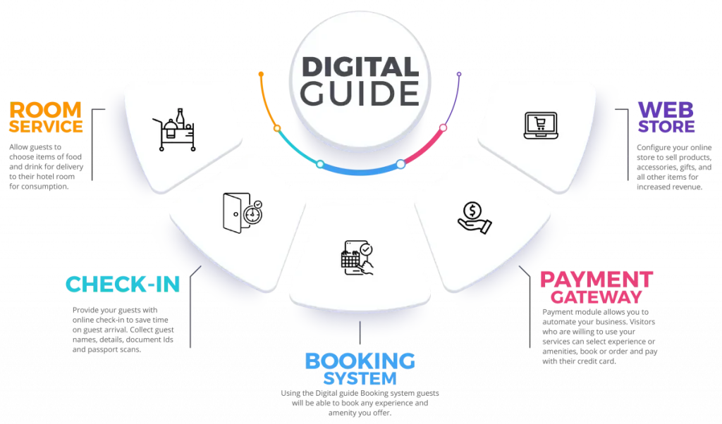 Digital Guide is your digital assistant and concierge, that automates communication with your guests for room services, requests for amenities, housekeeping, transport and rental options.