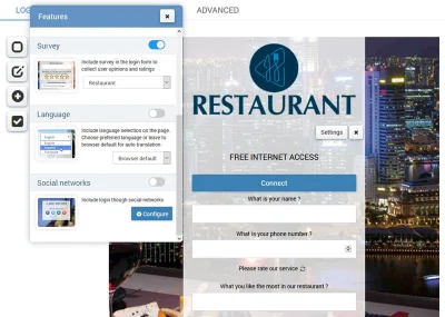 A survey form can be displayed on the login screen, welcome page, or anywhere you want. It can be configured to appear at each location in your network or only at some of your locations.