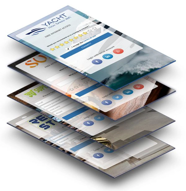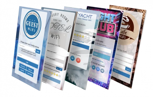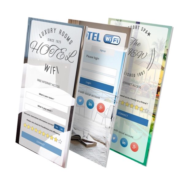Enhance the customer experience with more than 50 responsive HotSpot themes. All the themes can be easily customized with your logo, background, branding, buttons and special elements like surveys, social login, signup forms.