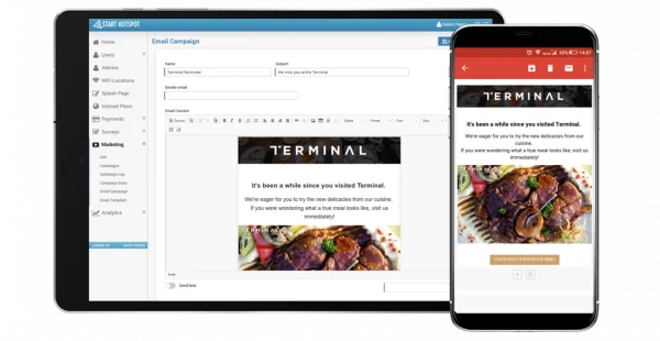 Engage your guests with video or image ads and provide complimentary free WiFi.